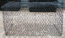 Caja de 2x1x1 m de malla de triple torsión, hexagonal, de 50x70 mm, de alambre de acero galvanizado de 2 mm de diámetro, para gavión, según UNE 36730. |