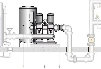 Grupo de presión, formado por 2 bombas centrífugas electrónicas de 4 etapas, verticales, con rodetes, difusores y todas las piezas en contacto con el medio de impulsión de acero inoxidable, conexión en aspiración de 2", conexión en impulsión de 2", cierre mecánico independiente del sentido de giro, unidad de regulación electrónica para la regulación y conmutación de todas las bombas instaladas con variador de frecuencia integrado, con pantalla LCD para indicación de los estados de trabajo y de la presión actual y botón monomando para la introducción de la presión nominal y de todos los parámetros, memoria para historiales de trabajo y de fallos e interface para integración en sistemas GTC, motores de rotor seco con una potencia nominal total de 2,2 kW, 3770 r.p.m. nominales, alimentación trifásica (400V/50Hz), con protección térmica integrada y contra marcha en seco, protección IP55, aislamiento clase F, vaso de expansión de membrana de 8 l, válvulas de corte y antirretorno, presostato, manómetro, sensor de presión, bancada, colectores de acero inoxidable. Incluso tubos entre los distintos elementos y accesorios. Totalmente montado, conexionado y puesto en marcha por la empresa instaladora para la comprobación de su correcto funcionamiento. Sin incluir la instalación eléctrica. | ||