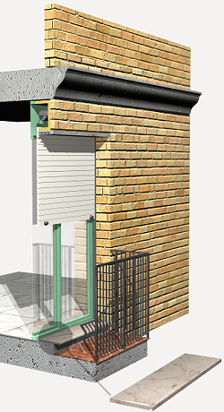 Umbral para remate de puerta de entrada o balconera de mármol Blanco Macael, en piezas de hasta 1100 mm de longitud, hasta 200 mm de anchura y 20 mm de espesor, con goterón, cara y canto recto pulido, con banda antideslizante y grava adherida a la superficie en su cara inferior, empotrado en las jambas, cubriendo el escalón de acceso en la puerta de entrada o balcón de un edificio; recibido con mortero de cemento, industrial, con aditivo hidrófugo, M-10; y rejuntado entre piezas y de las uniones con los muros con mortero de juntas especial para piedra natural. |