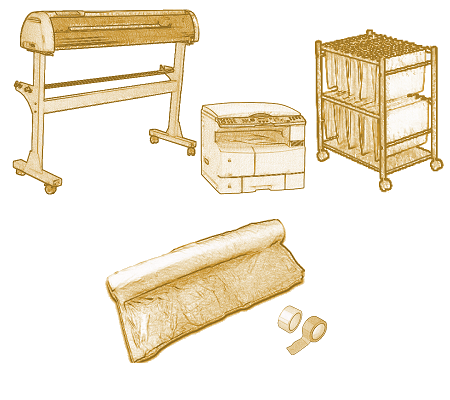 Suministro y colocación de láminas de polietileno transparente sobre el equipamiento auxiliar como archivos, material electrónico, etc., (aproximadamente 7 ud/m³), solapadas entre sí al menos 15 cm y fijadas con cinta adhesiva, para protegerlo frente a la suciedad y el polvo ocasionado por los trabajos de rehabilitación. Incluso posterior retirada de láminas, recogida y carga sobre contenedor.