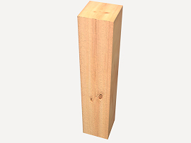Pilar de madera aserrada de pino insigne (Pinus radiata), de 14x14 a 20x20 cm de sección y hasta 4 m de longitud, calidad estructural MEG, clase resistente C16, protección de la madera con clase de penetración NP5 y NP6, trabajada en taller. |