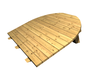 Rampa de saltos para bicicletas, de madera de pino silvestre, tratada en autoclave, con clase de uso 4 según UNE-EN 335, acabada con barniz protector, de 1,50x1,50x0,50 m, con tornillería de acero galvanizado, embutida y protegida con tapones de seguridad, con zona de seguridad de 20,25 m², colocación con taco químico, arandela y tornillo sobre una base de hormigón HM-20/P/20/X0. | ||