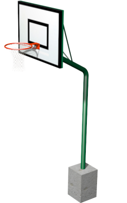 Canasta fija de minibasket de 3,2 m de altura formada por: poste de tubo de acero de 90 mm de diámetro y 3 mm de espesor, con codo curvado soldado, cuadro de tubo rectangular de 50x30 cm y tirantes de tubo de acero, todo ello pintado con polvo de poliéster, tablero de contrachapado fenólico, de 120x90 cm y 30 mm de espesor, aro de varilla maciza de 20 mm de espesor colocado a una altura de 2,6 m y red de algodón con cuerdas de 6 mm de diámetro con doce puntos de fijación al aro, para usuarios de más de 6 años, empotrada 60 cm en una base de hormigón HM-20/P/20/X0. | ||