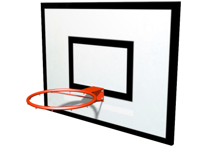 Tablero de baloncesto de madera laminada encolada con resinas fenólicas, resistente a la intemperie, de 180x105x2 cm, para usuarios de más de 8 años, con aro de varilla maciza de 20 mm de espesor y 45 cm de diámetro. | ||