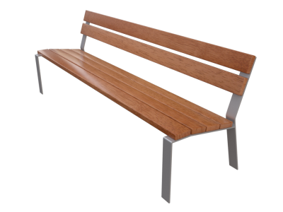 Banco, de 180x70x45 cm con asiento y respaldo de madera tropical y cuerpo estructural de acero, colocación con taco químico, arandela y tornillo. | ||