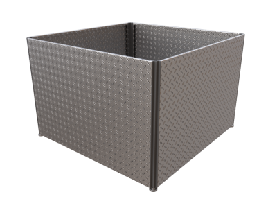 Jardinera de 120x120x80 cm, con paneles de acero inoxidable AISI 304 y estructura de perfiles de acero con protección antioxidante y pintura de color negro.