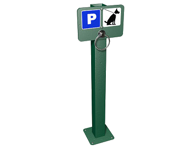 Soporte de pie para estacionamiento de perros, formado por placa metálica y una anilla de acero, colocación con taco químico, arandela y tornillo. | ||