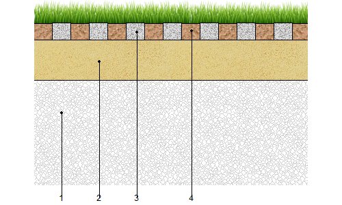| Pavimento drenante, con piezas prefabricadas de hormigón y césped | ||