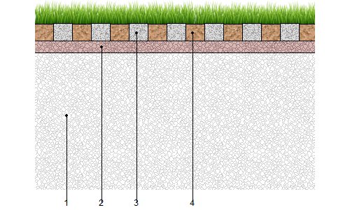 | Pavimento drenante, con piezas prefabricadas de hormigón y césped. Sistema "MONTALBÁN Y RODRÍGUEZ" | ||