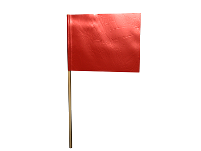 Banderín para señalización, de material textil, con recubrimiento de material plástico, de 40x50 cm, de color rojo y vástago de madera de 1 m, amortizable en 5 usos.