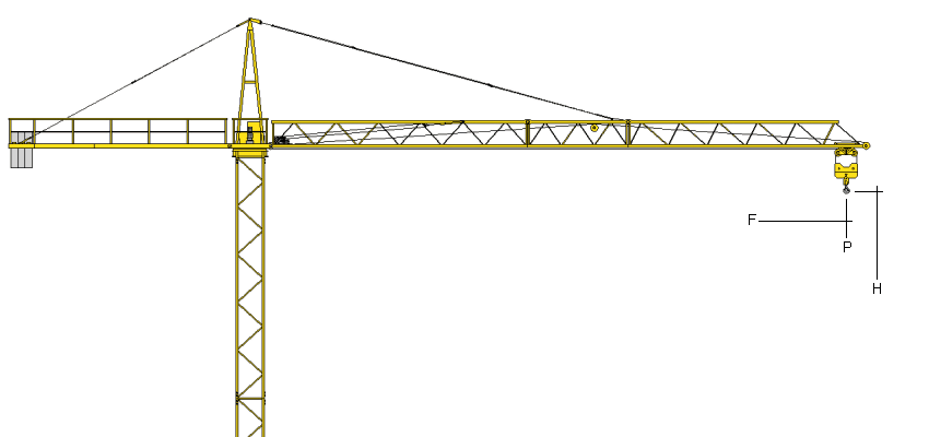Alquiler mensual de grúa torre de obra para elevación y transporte de materiales, con base empotrada, formada por torre metálica, brazo horizontal giratorio de 40 m de flecha, 1475 kg de carga máxima en punta y 20 m de altura bajo gancho y motores de orientación, elevación y distribución o traslación de la carga. | ||