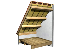 | NAN110 | Aislamiento térmico por el interior de cubiertas inclinadas de estructura de madera, sobre espacio habitable | |