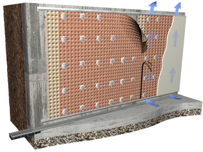 | NDM100 | Drenaje de muro de hormigón en contacto con el terreno, parcialmente estanco, por su cara interior, con láminas nodulares | |