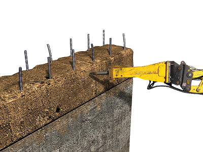 Descabezado de pilote-pantalla (barrette), de 30 cm de espesor, mediante el repicado mecánico con martillo rompedor del tramo comprendido entre el nivel de llenado del hormigón y el nivel de descabezado, hasta asegurar la ausencia de hormigón contaminado por lodos y la calidad descrita en el Proyecto, y carga de escombros sobre camión o contenedor.