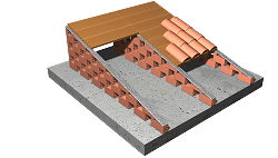 Cubierta inclinada, "VEREA SYSTEM", con una pendiente media del 30%, sobre tablero cerámico y tabiques aligerados sobre forjado de hormigón, impermeabilización con placas onduladas de fibrocemento sin amianto, sobre la que se coloca una cobertura de tejas cerámicas curvas, "TEJAS VEREA", acabado con coloración en masa Rojo, 40x15x11 cm fijadas con espuma de poliuretano y anclajes mecánicos. Incluso accesorios de fijación de las placas y remates. | ||