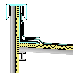 Perfil colaminado de chapa de acero y PVC-P, B (con pestaña) PVC Light Grey "DANOSA", para remate de impermeabilización en los extremos de las láminas de PVC-P y en encuentros con elementos verticales.