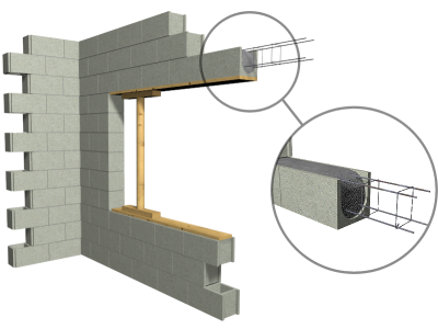 Dintel de fábrica armada de bloques en "U" de hormigón, cara vista