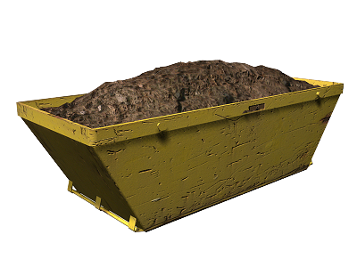 Transporte de tierras con contenedor de 7 m³, a vertedero específico, instalación de tratamiento de residuos de construcción y demolición externa a la obra o centro de valorización o eliminación de residuos. Incluso servicio de entrega, alquiler y recogida en obra del contenedor.