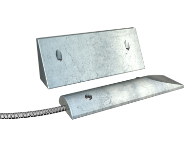 Contacto magnético de gran potencia, apertura máxima de la puerta o ventana para activar el contacto 75 mm, con carcasa de aluminio, protección antiapertura y contacto normalmente cerrado. Instalación en puerta o en ventana. Incluso elementos de fijación.