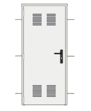 Puerta interior abatible de una hoja de 38 mm de espesor, 700x1945 mm de luz y altura de paso, acabado galvanizado formada por dos chapas de acero galvanizado de 0,5 mm de espesor con rejillas de ventilación troqueladas en la parte superior e inferior, plegadas, ensambladas y montadas, con cámara intermedia rellena de poliuretano, sobre marco de acero galvanizado de 1 mm de espesor, sin premarco. Incluso patillas de anclaje para la fijación del marco al paramento.