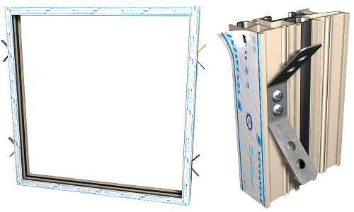 Recibido de carpintería de aluminio, acero o PVC, con patillas de anclaje, de hasta 2 m² de superficie, con mortero de cemento, industrial, con aditivo hidrófugo, M-5.