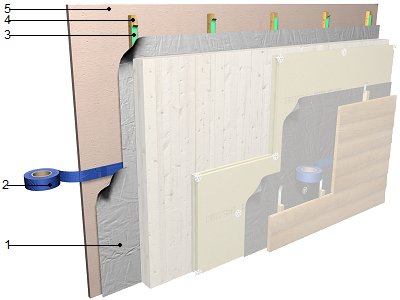 | Trasdosado autoportante de placas de yeso laminado reforzado con fibras, sobre muro estructural exterior de madera | ||