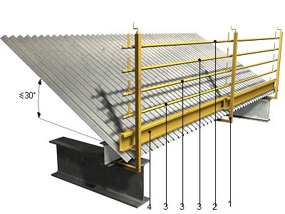 | Sistema provisional de protección de borde de forjado, clase B, en cubiertas inclinadas metálicas | ||