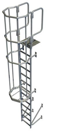 | Escalera vertical de seguridad de acceso a cubierta, con jaula de protección | ||