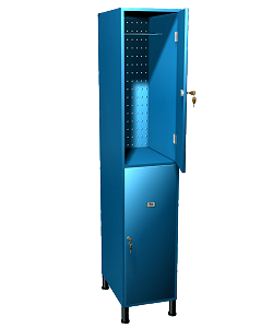 Taquilla modular para vestuario, de 300 mm de anchura, 500 mm de profundidad y 1800 mm de altura, de tablero fenólico HPL, color a elegir formada por dos puertas de 900 mm de altura y 13 mm de espesor, laterales, estantes, techo, división y suelo de 10 mm de espesor, y fondo perforado para ventilación de 3 mm de espesor. | ||