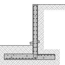 Replanteo de la cimentación del muro. Colocación de las armaduras con separadores homologados. Disposición de los tubos de drenaje. Resolución de juntas de construcción. Vertido y compactación del hormigón. Curado del hormigón. Reparación de defectos superficiales, si procede.