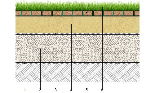 | Pavimento drenante, con rejilla alveolar y césped | ||