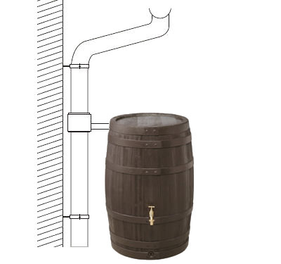 Depósito para aprovechamiento de aguas pluviales, de polietileno de alta densidad, de 260 l, color marrón acabado imitación madera, de 650 mm de diámetro y 930 mm de altura, con dos conexiones roscadas de 3/4", grifo de latón acabado dorado con rosca macho de 3/4" y racor de conexión a manguera, tapón de 3/4" y elementos de fijación. Instalación en el exterior. | ||