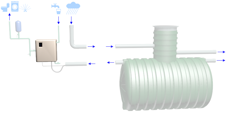 Estación de control para aprovechamiento de aguas pluviales, de 550x265x595 mm, con electrobomba autoaspirante, caudal máximo 110 l/min, altura máxima de impulsión 30 m, presión máxima de trabajo 5,5 bar, con motor con variador de frecuencia incorporado, de 1,25 kW, alimentación a 220/240 V y 50-60 Hz, panel de control con pantalla de led, válvulas de corte, conexión de alimentación de agua potable de 3/4" de diámetro, conexión de alimentación de agua de la cisterna para aprovechamiento de aguas pluviales de 1" de diámetro, conexión con la tubería de desagüe de 50 mm de diámetro, terminal para conexión eléctrica e interruptor de nivel con boya, contrapeso y cable de 15 m de longitud. Incluso elementos de fijación. | ||
