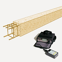Ensayo para la determinación del armado superior en una viga de hormigón armado, mediante el uso de pachómetro, obteniendo el número de barras y la disposición de las mismas, sin incluir cala ni reposición de revestimientos o recubrimientos.