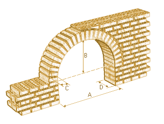 Cimbra de madera, amortizable en 5 usos, para el apeo de arco de medio punto, 200 cm de luz libre, 100 cm de flecha y 24 cm de anchura, apoyada sobre sopandas de madera y puntales metálicos telescópicos de 3 m de altura, amortizables en 150 usos, dimensionada para soportar una carga máxima de trabajo de 200 kg/m². | ||