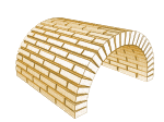 Cimbra de madera de pino, amortizable en 1 uso, para el apeo durante la fase de ejecución y hasta que el elemento estructural esté en condiciones de soportar los esfuerzos, de bóveda de cañón de 1/2 pie de espesor, apoyada sobre sopandas de madera y puntales metálicos telescópicos de 3 m de altura, amortizables en 150 usos, dimensionada para soportar una carga máxima de trabajo de 400 kg/m². Incluso entalladuras, material de unión, dispositivos de trabazón, sellado de juntas entre piezas, mermas, cortes, aplomado y nivelación del conjunto, cimbrado y posterior descimbrado con los medios adecuados.
