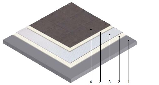 | Desolidarización bajo pavimento cerámico o de piedra natural, con láminas de elastómero de celdas cerradas | ||
