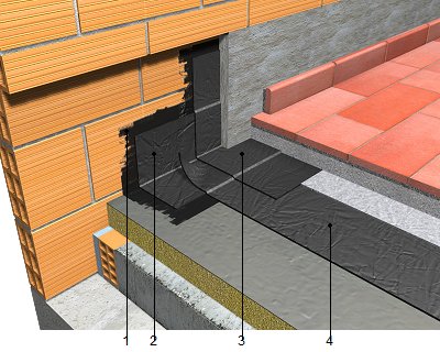 | Encuentro de cubierta plana transitable, no ventilada con paramento vertical. Impermeabilización con láminas asfálticas | ||