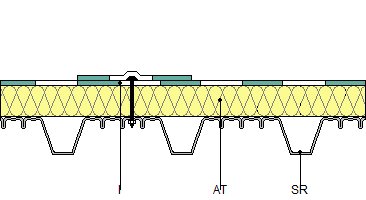 Cubierta plana no transitable, no ventilada, Deck con fijación mecánica, tipo convencional, pendiente del 1% al 15%. SOPORTE BASE: perfil nervado autoportante de chapa de acero galvanizado DX51D+Z275 S 280 de 0,7 mm de espesor, con sección trapezoidal para cubierta Deck, con nervios de 48 mm de altura separados 250 mm; AISLAMIENTO TÉRMICO: panel rígido de lana mineral hidrofugada; IMPERMEABILIZACIÓN: tipo monocapa, fijada mecánicamente, formada por una lámina impermeabilizante flexible de PVC-P, (fv), de 1,2 mm de espesor, con armadura de velo de fibra de vidrio, y con resistencia a la intemperie, fijada en solapes y bordes mediante soldadura termoplástica; FIJACIONES MECÁNICAS: tornillos de acero de 6 mm de diámetro y 65 mm de longitud, con tratamiento anticorrosión, taco y arandela de reparto de 40x40 mm (3 ud/m²). | ||
