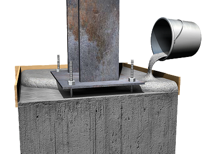Mortero cementoso fluido de altas prestaciones mecánicas y de retracción compensada, con una resistencia a compresión a 28 días mayor o igual a 60 N/mm², compuesto de cemento, aditivos especiales y áridos seleccionados, para uso general, utilizado en el relleno por vertido de apoyos estructurales.