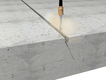 Limpieza del interior de fisura en elemento de hormigón mediante inyección de aire a presión, quedando el interior y la superficie a ambos lados de la fisura libres de polvo, restos de pinturas, desencofrantes o cualquier material que pueda impedir la correcta adherencia del material de sellado superficial.