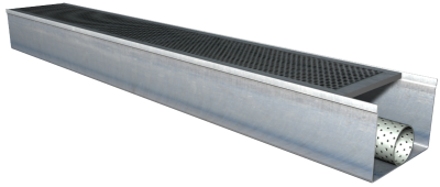Canalón cuadrado de acero prelacado, de desarrollo 250 mm; con tubo de drenaje de PVC corrugado, diámetro nominal 50 mm, con perforaciones en todo su desarrollo y rejilla de polipropileno, de 130x500 mm y 25 mm de espesor, color gris, para recogida de aguas de ajardinamiento vertical con cultivo hidropónico en geoproductos, para exterior, con una superficie de hasta 5 m²; formado por piezas preformadas, fijadas con soportes galvanizados colocados cada 50 cm, con una pendiente mínima del 0,5%, conexionado a el sistema de recirculación. | ||