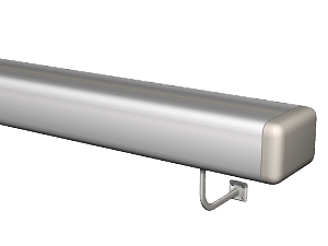 Pasamanos recto de aluminio anodizado color natural, de 60x40 mm de sección, con soportes de aluminio fijados al paramento mediante anclaje mecánico con tacos de nylon y tornillos de acero galvanizado. | ||