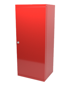 Armario de chapa de acero acabado con pintura epoxi color rojo RAL 3000, con puerta ciega, de 270x640x220 mm, para extintor de polvo de 6 a 12 kg. Instalación en superficie. Incluso accesorios de montaje.
