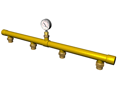 Colector de cobre, con entrada de 3/4" de diámetro y tres derivaciones de 3/4" de diámetro, para unión roscada y manómetro de acero inoxidable. Incluso, elementos de montaje y demás accesorios necesarios para su correcto funcionamiento.