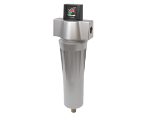 Filtro coalescente y de partículas, de fundición de aluminio, con una eficacia del 90%, para un caudal de 200 l/min, de 1/8" de diámetro, con purgador automático con flotador. | ||