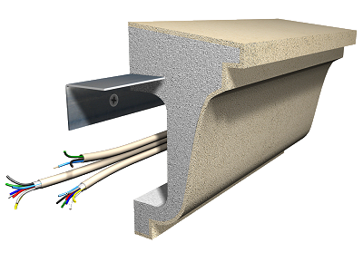 Moldura cubre cables, de poliestireno expandido, con recubrimiento de mortero acrílico, de 260x165x1200 mm, con perfil de apoyo en "L", de acero galvanizado; fijada al paramento de fachada con anclaje mecánico con tacos de nylon y tornillos de acero; recibido de la moldura con mortero adhesivo y sellado de las juntas entre piezas y de las uniones con los muros con adhesivo a base de poliuretano.