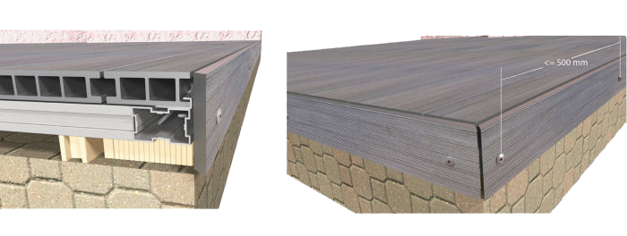 | Perfil para remate lateral de tarima de composite (WPC) "TARIMATEC", para exterior | ||