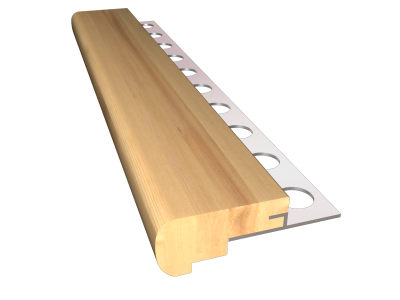 Mamperlán de 1000 mm de longitud, formado por perfil de aluminio, con revestimiento de madera de roble, acabado barnizado, de 65 mm de anchura y 33 mm de altura.