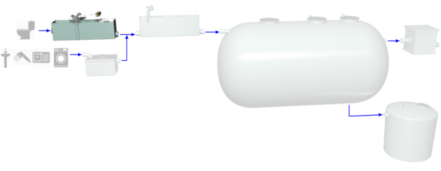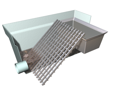 Arqueta de desbaste de poliéster reforzado con fibra de vidrio (PRFV), de 950x595x475 mm, con boca de entrada y boca de salida, de 110 mm de diámetro, tapa, reja de gruesos, cesta extraíble y rastrillo. | ||